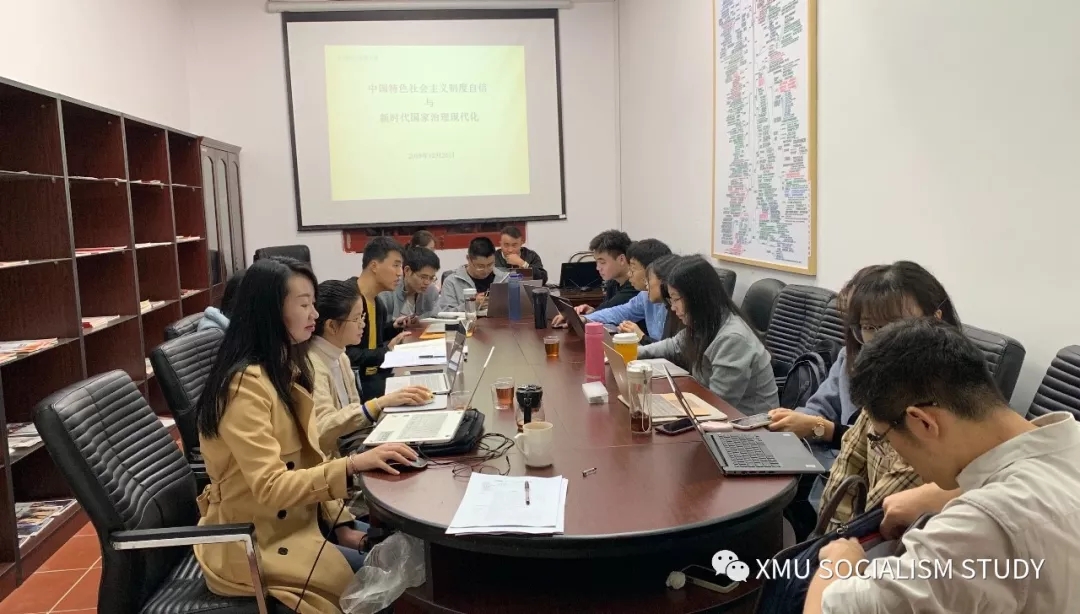 2019年12月25日晚7时,第五期冯语读书会如约而至。在同安楼209教室,来自马克思主义中国化研究方向的14名硕博士研究生参加了此次读书活动,未出席本次读书会的两名同学提交了学习报告表,通过书面形式汇报了自己近两周的读书心得。本期读书会活动由杨旭博士后主持,中心首席专家冯霞教授参与指导,同学们自主发言,分享见解,共享读书盛宴。