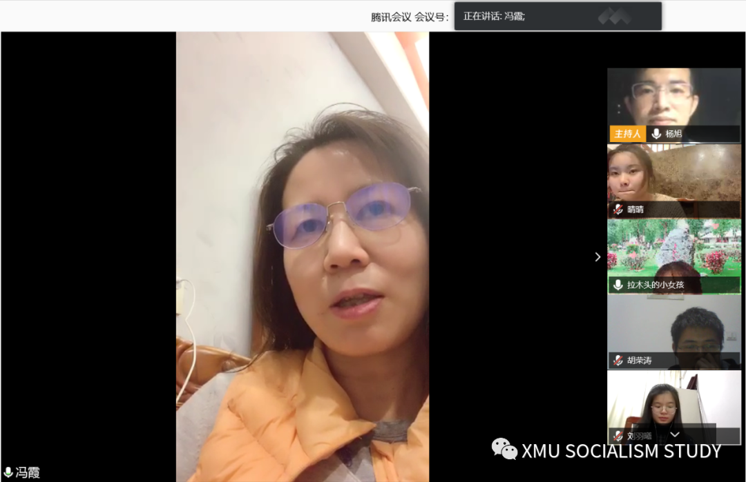 关于下一阶段学习任务布置。冯霞教授表示,尽管受新冠疫情的影响,同学们暂时无法回到学校,但是各项学习任务实际依然十分紧迫,同学们尤其是即将进行学位论文开题的同学们一定要紧张起来,利用这段时间集中地训练自己,而不是慢悠悠地任时间流失。她表示,冯语读书会将以线上云汇报的形式恢复定期举办,同学们可以更好地进行彼此监督、共享学习资料。此外,冯霞教授还特别强调同学们一定要注重疫情期间的身体锻炼,为早日返校进行学习工作打下牢固的“革命本钱基础”。