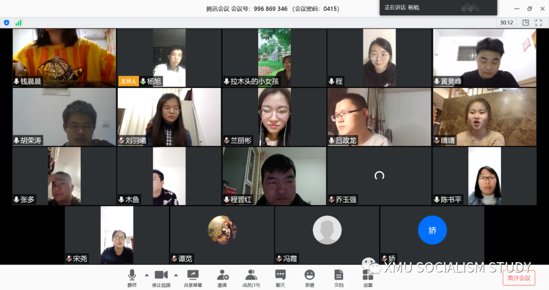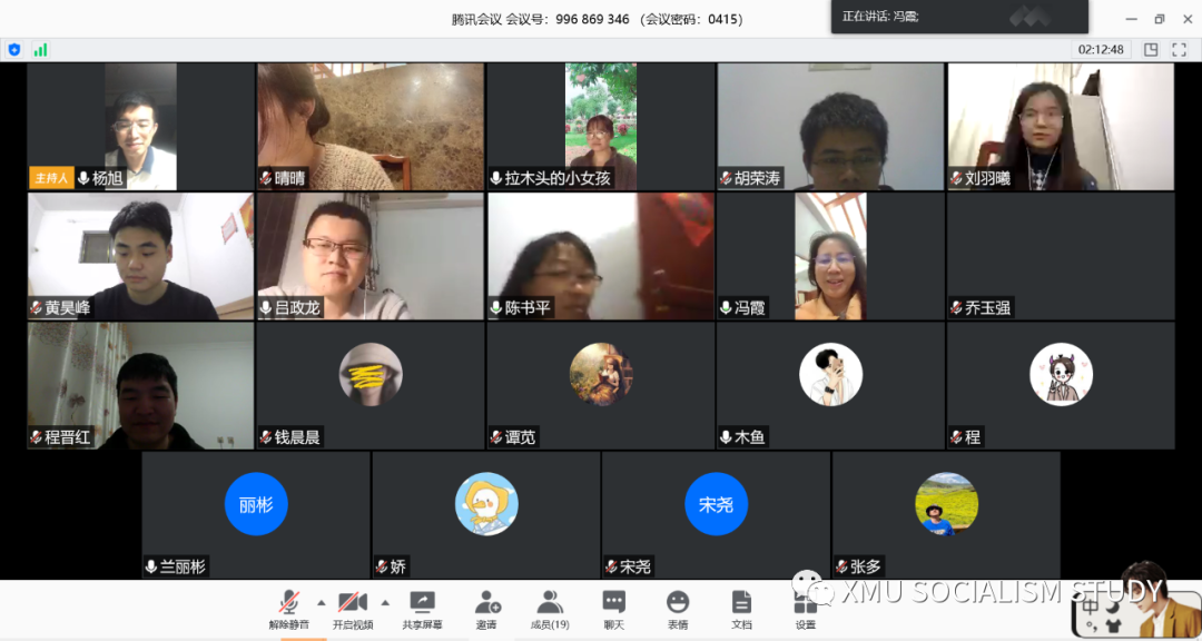 2020年4月15日晚7时,中心冯语读书会全体成员展开了一场特殊的云读书活动。来自马克思主义中国化研究方向的17名硕博士研究生以线上面对面的形式,云分享了彼此在疫情期间的读书学习情况。本次线上读书会由博士后杨旭主持,中心首席专家冯霞教授指导。