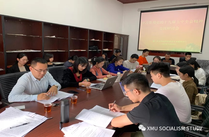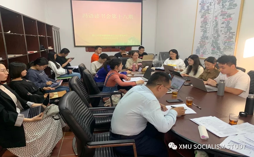 2020年11月12日下午,厦门大学中国特色社会主义研究中心冯语读书会在同安楼209教室如期举行,来自马克思主义中国化研究方向的17名硕博士参加了读书会活动。本次读书会分为上下两场,其中上半场全体师生认真学习贯彻党的十九届五中全会精神,下半场同学们围绕近期学习情况进行交流探讨。此次冯语读书会由中心首席专家冯霞教授、李建助理教授、杨旭博士后指导,蒋娇娇硕士主持。