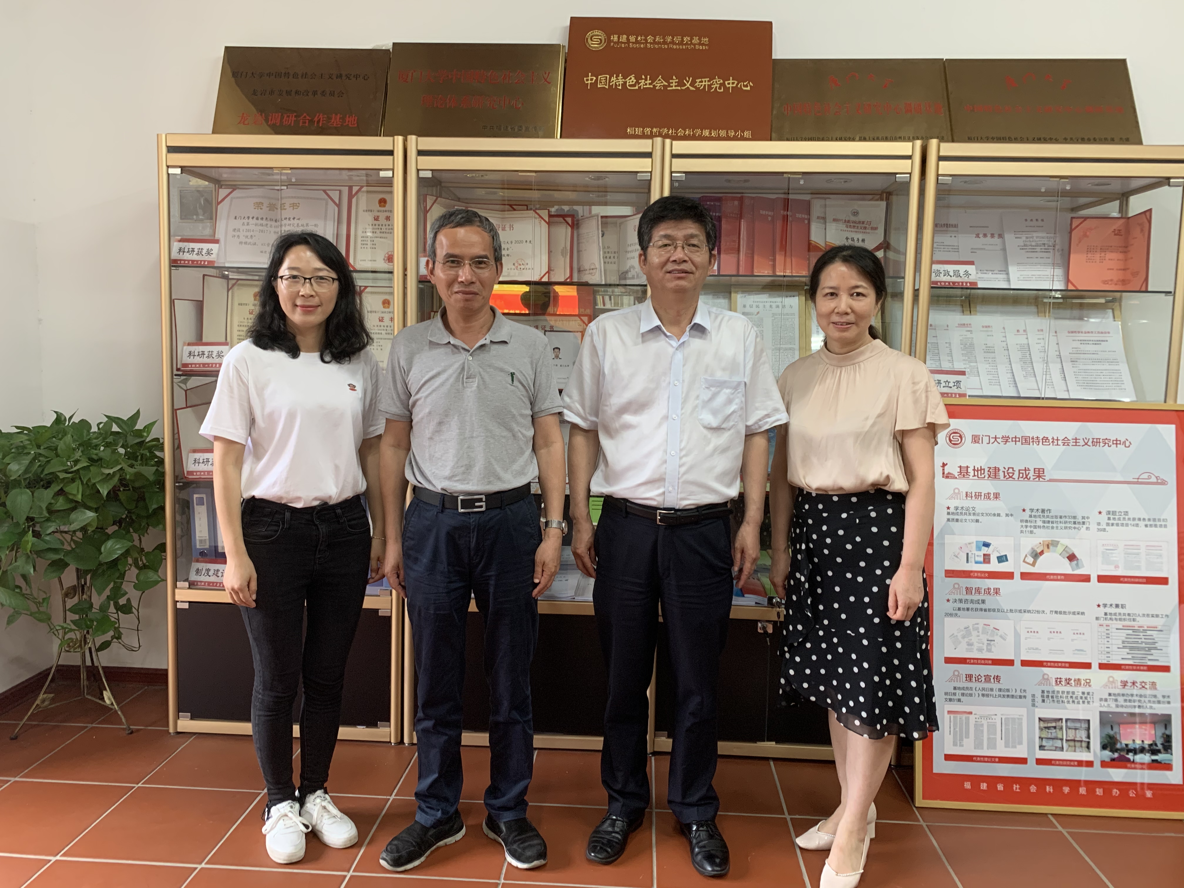 5月13日上午,福建社会科学院副院长刘小新教授带领福建省社会科学研究基地考核评估专家组莅临我校,对厦门大学中国特色社会主义研究中心开展第二轮建设考评工作。福建省社科联党组成员、秘书长、省社科规划办主任陈飞,省社科规划办副主任肖孟刚等一同来校考察。专家组成员还包括:厦门大学一带一路研究院常务副院长陈武元教授、福建师范大学协和学院院长张华荣教授、福建社会科学院科研处处长吴肇光研究员、中共福建省委党校党建教研部主任郭为桂教授。