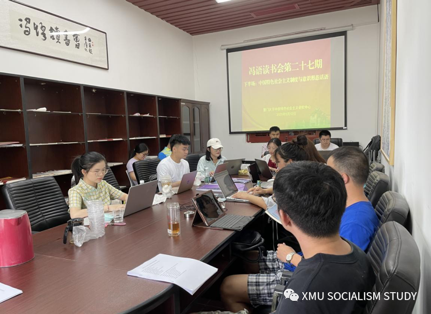 2021年5月12日下午,第二十七期厦门大学中国特色社会主义研究中心冯语读书会在同安楼209教室如期举行,来自马克思主义中国化研究方向的18名硕博士研究生参加了此次读书会活动,同学们围绕"马克思主义政党建设与国家治理现代化"和"中国特色社会主义制度与意识形态话语权"两个主题进行汇报交流。本期读书会由中心首席专家冯霞教授、杨旭博士后指导,宋尧博士主持。