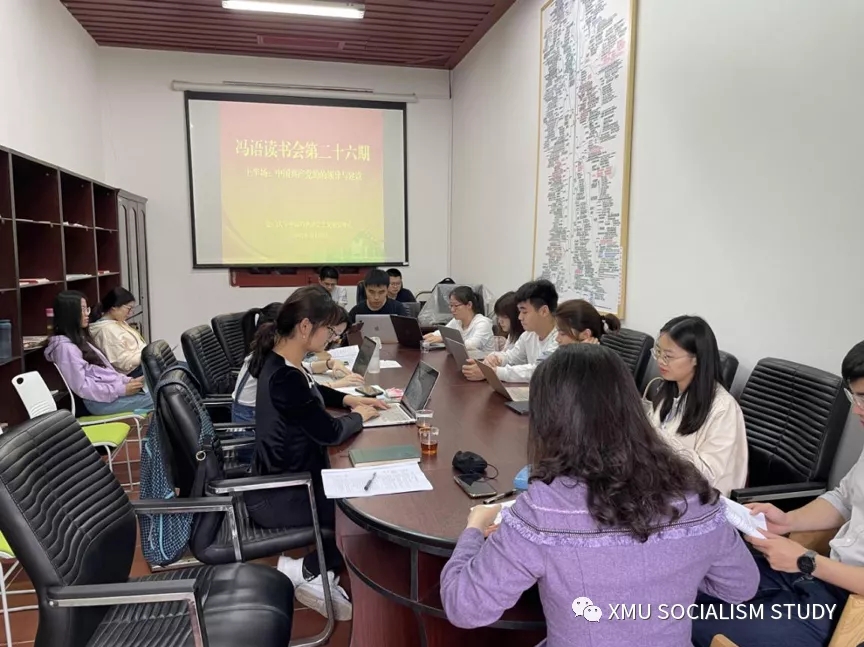 微雨时节好读书。2021年4月28日下午,厦门大学中国特色社会主义研究中心第二十六期冯语读书会在同安楼209如期开展,来自马克思主义中国化研究方向的18名硕博士研究生围绕"党的领导制度与建设"与"治理现代化研究"两个主题进行了深入地交流与探讨。本次读书会由中心首席专家冯霞教授、李建助理教授、杨旭博士后指导,陈书平博士主持。