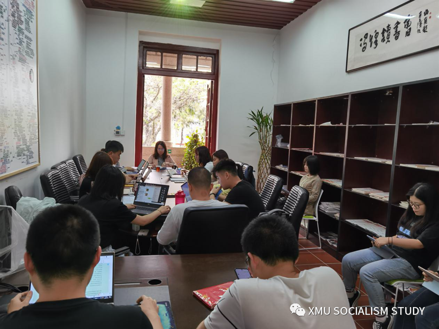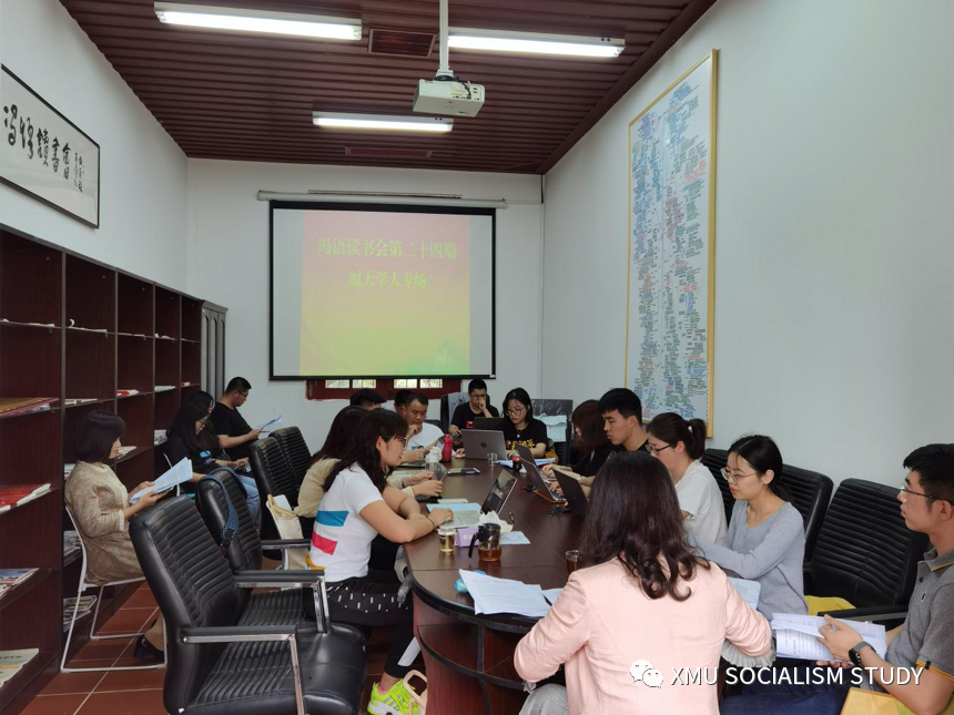 2021年3月31日下午,厦门大学中国特色社会主义研究中心冯语读书会在同安楼209教室如期举行,来自马克思主义中国化研究方向的18名硕博士参加了读书会活动。本次读书会分为两个专场,其中上半场同学们根据自身研究方向和兴趣选择厦大学者的论文或专著进行分享;下半场读书会成员为四位硕士研究生的学位论文大纲提供建议。此次冯语读书会由中心首席专家冯霞教授、杨旭博士后指导,谭苋博士主持。