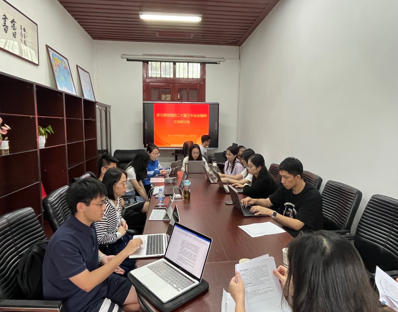 为深入学习贯彻党的二十届三中全会精神,9月5日下午,福建省社会科学研究基地厦门大学中国特色社会主义研究中心在同安楼209会议室召开“学习贯彻党的二十届三中全会精神”交流研讨会,中心首席专家冯霞教授主持会议,中心青年师生参加会议并交流探讨。